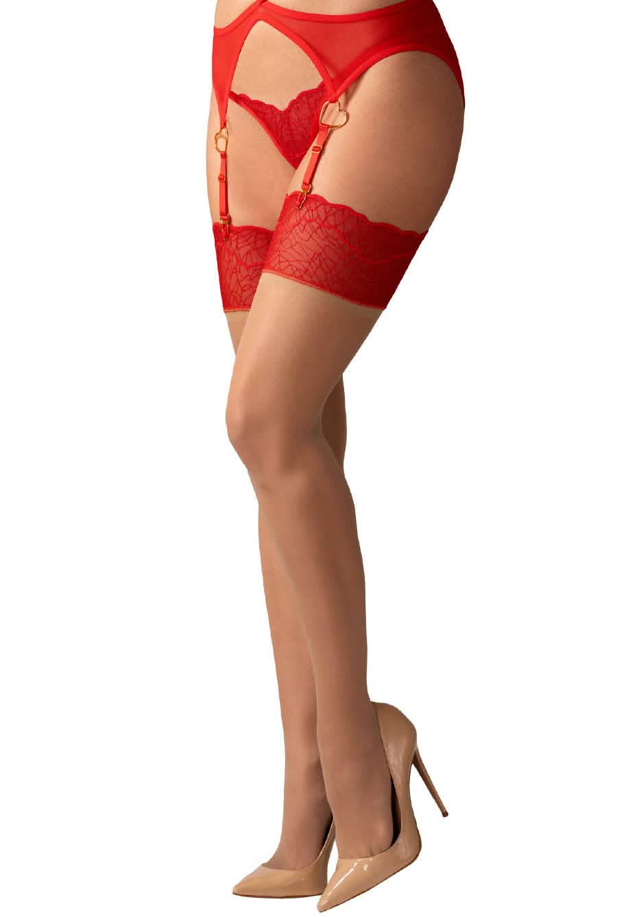 Heart Me Red & Nude Sheer Lace Top Stockings