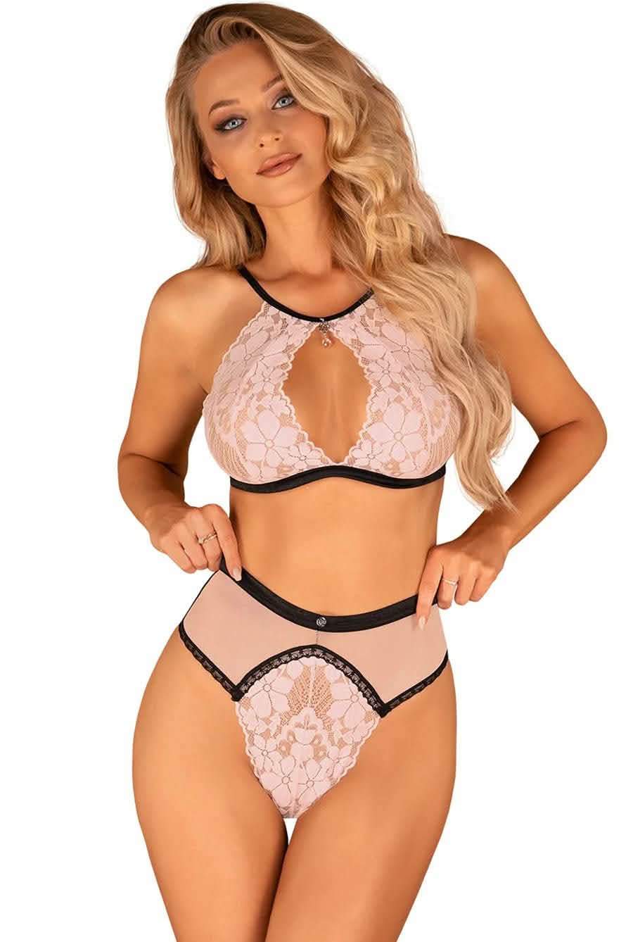 Luxe Blush Pink Lace & Black 2 Piece Lingerie Set