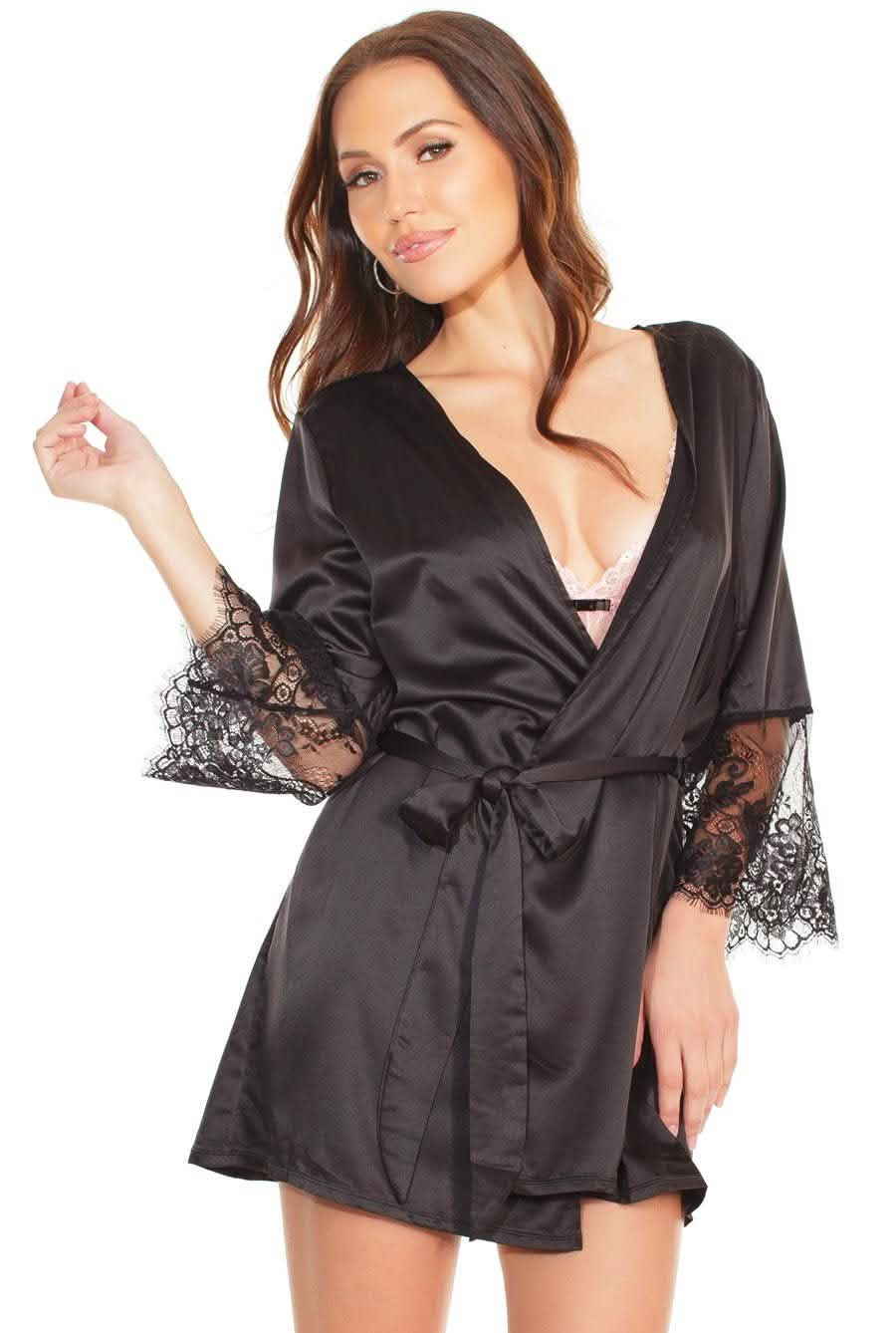 Black Eyelash Lace & Satin Robe