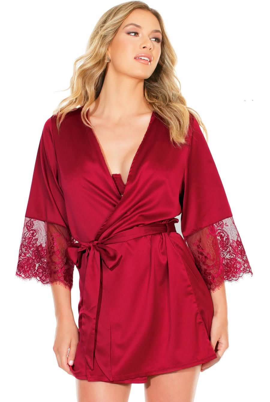 Satin & Lace Burgundy Long Sleeve Robe