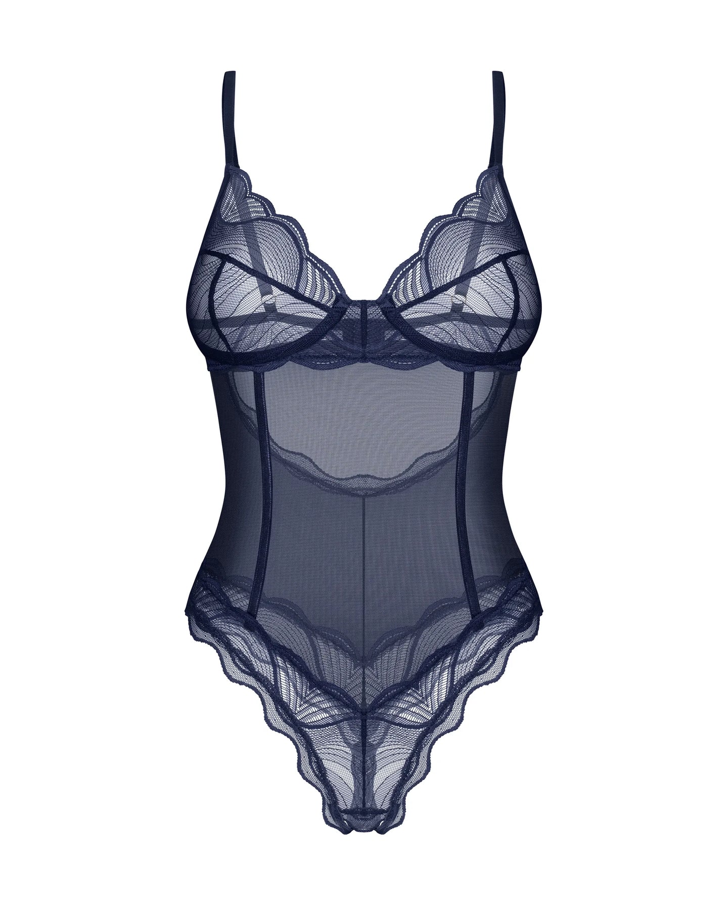 Sheer Navy Mesh Crotchless Bodysuit